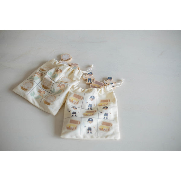 De jonge speler die als eerst 3 houten zeemeerminnen óf 3 parels op een rij heeft wint het spelletje. Maar let op! Dit kan horizontaal, verticaal óf diagonaal. Dit spelletje helpt je kindje op verschillende manieren om logisch na te denken.
